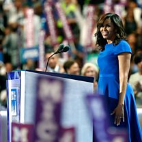 First Lady stars on day one, as Bernie Sanders is booed for supporting Hillary Clinton. Also today - airport blast in Mogadishu protected zone. The world's tallest - and shortest - countries. And snow - in Durban. (Photo: Aaron P. Bernstein/Getty Images)