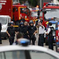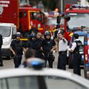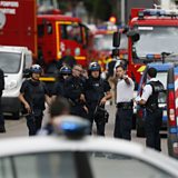 (Photo: French police officers and fire engines arrive at the scene of a hostage-taking at a church in Rouen, Credit: AFP/Getty Images)