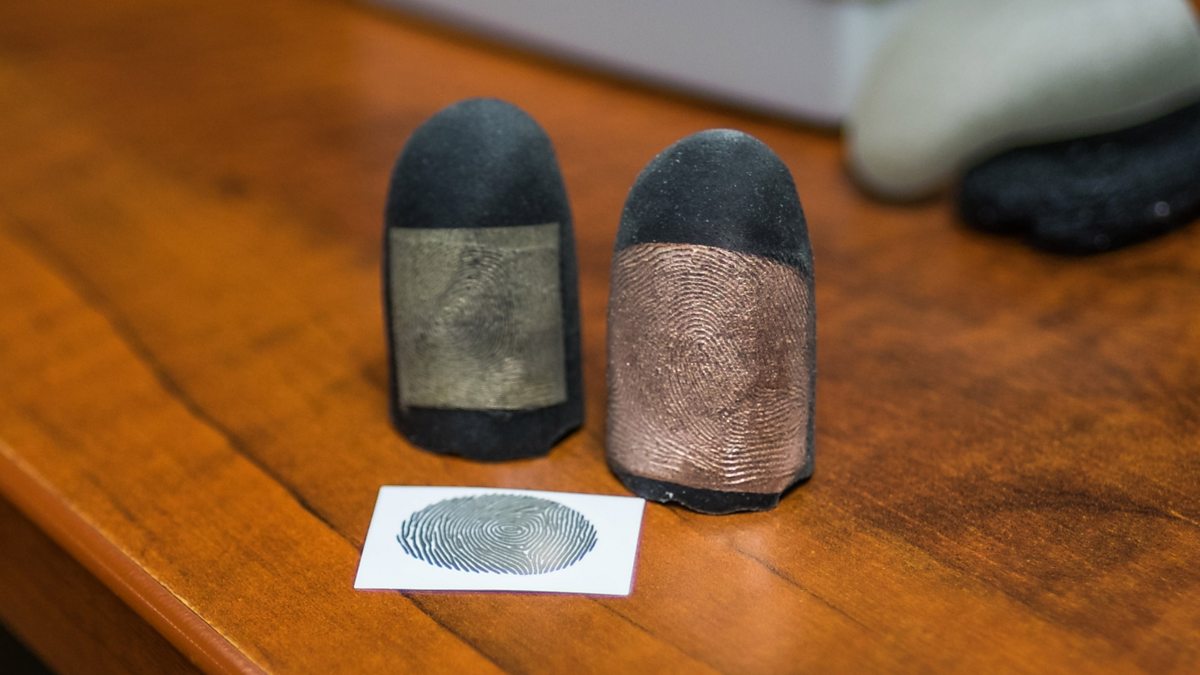 (Photo caption: Two examples of 3D fingerprints with different conductive coating and one example of 2D fingerprint printed on special conductive paper © Michigan State University)