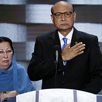 (Photo: Ghazala Khan, mother of fallen US Army Capt. Humayun S. M. Khan and her husband, Khizr, on the final day of the Democratic National Convention in Philadelphia, July 28th 2016. Credit: Associated Press)