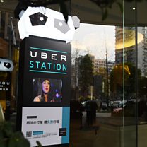( An Uber Station outside a hotel in Chengdu, in Sichuan province Credit Greg Baker/AFP/Getty Images)