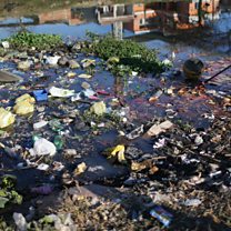 (Picture: A boy reaches for a ball along a polluted canal in Rio de Janeiro, Credit: Getty Images)