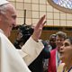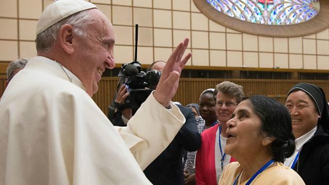 (Photo: pope blessing a woman watched by clergy. Credit AP)