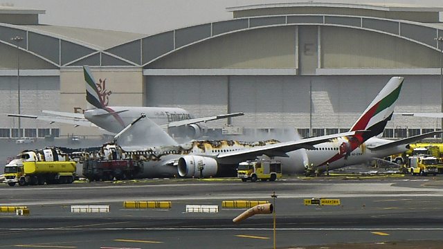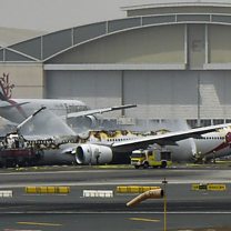 (Photo: Crashed Emirates airliner at Dubai International airport. Credit: AFP/Getty/Ahmed Ramzan)