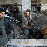 (Picture: Rebel fighters rest during clashes with regime forces near Aleppo. Credit: Getty Images)