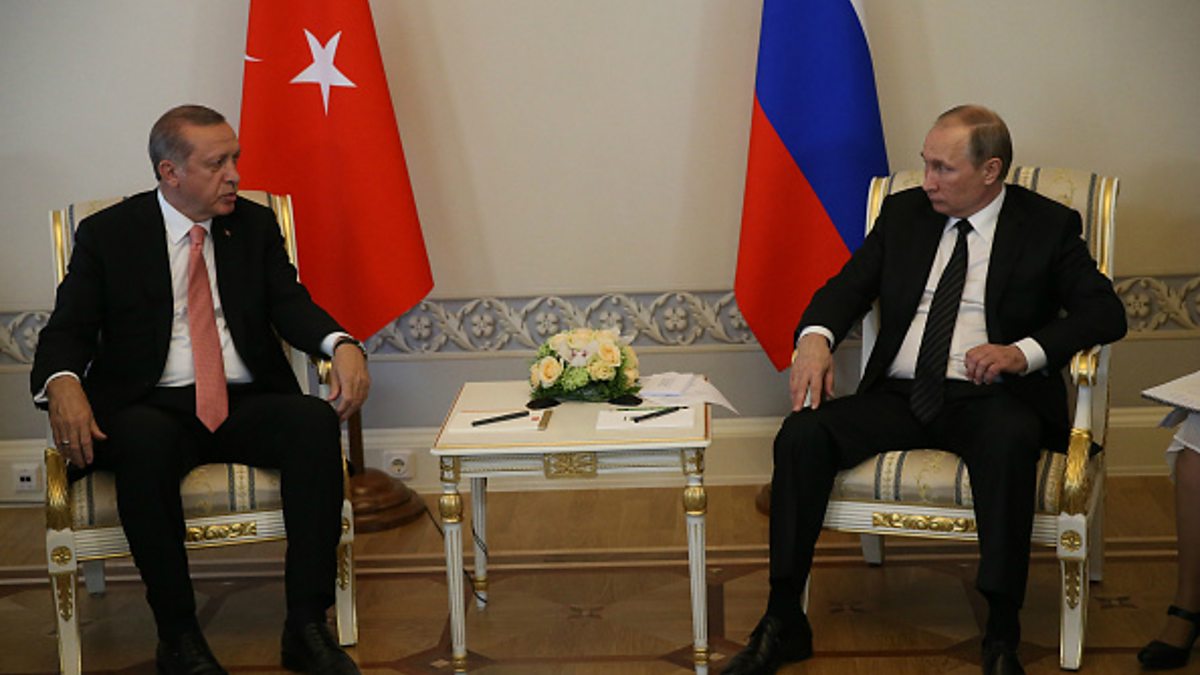 (Picture: Russian President Putin (R) meets Turkish President Erdogan in Saint Petersburg, Russia. Credit: Getty Images)