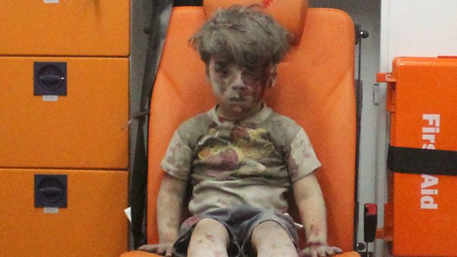 Photograph shows five-year-old Omran Daqneesh, with bloodied face, sitting inside an ambulance after he was rescued following an airstrike in the rebel-held al-Qaterji neighbourhood of Aleppo. (Credit: Reuters)