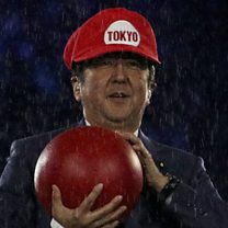 ( Image: Prime Minister of Japan Shinzo Abe on stage at the Rio Olympics 2016 closing ceremony. Credit: Stoyan Nenov/Reuters)