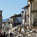 (Photo: People stand next to collapsed buildings in Amatrice. Credit: Reuters.)