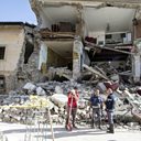 (Photo: Rescuers stand by a collapsed house in Amatrice, central Italy. Credit: ANSA/AP)