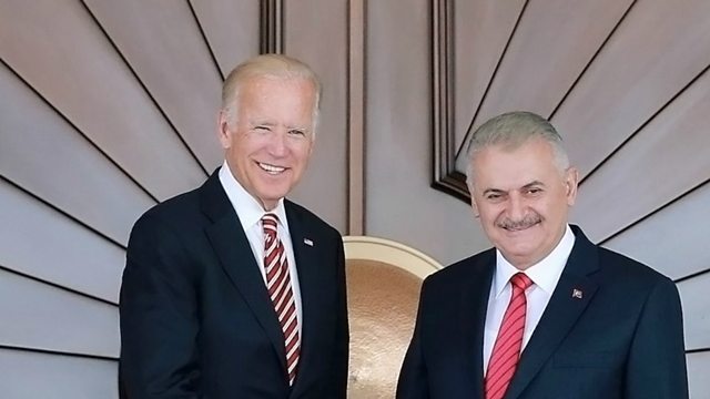 (Picture: US Vice President Joe Biden and Turkish Prime Minister Binali Yildirim shake hands before their meeting in Ankara Credit: AFP)