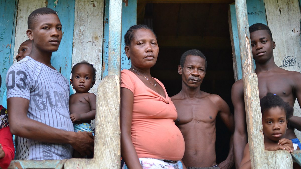 Some families are too afraid to return to their villages and live in extremely cramped conditions. Naila, a plantain and rice farmer, shows Lucy Ash her temporary home in Pie de Pato on the River Baudo.