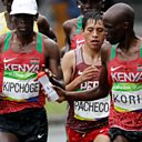 (Photo; Kenyan marathon runners Eliud Kipchoge and Wesley Korir, Credit; AP)