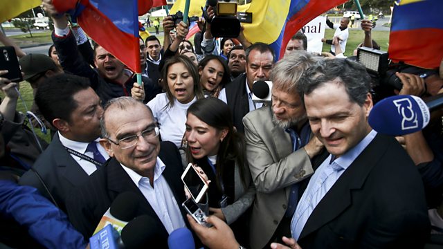 Ceasefire at midnight local time, FARC leader declares war against the state over; German vice-chancellor says EU free trade talks with US have in effect failed; Deadlock after presidential election in Gabon