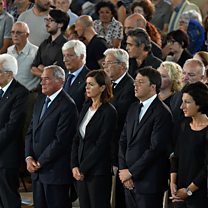 (Photography: Italian dignitaries attend a funeral mass for victims of the Amatrice earthquake. Credit: Getty Images)