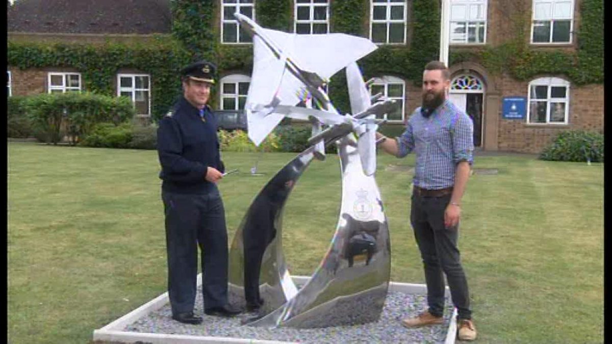 A sculpture of a Lancaster and Vulcan is unveiled at RAF Waddington.