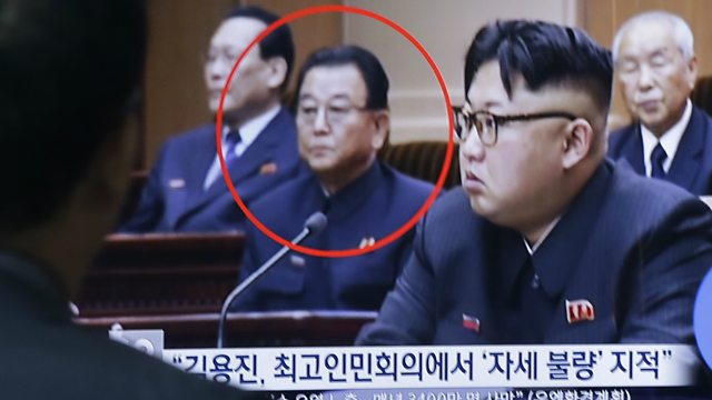 (PHOTO: A man in Seoul watches a TV screen showing library footage of Kim Yong Jin encircled sitting next to the leader Kim Jong Un,