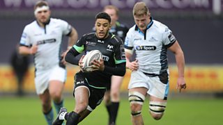 Darllediad byw o'r ddarbi leol rhwng y Gweilch a'r Scarlets o Stadiwm Liberty. Coverage...
