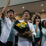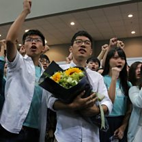 Photo: Pro-democracy activists celebrate in Hong Kong. Credit: AP)