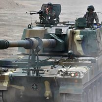 (Picture: South Korean soldiers during an equipment demonstration Credit: Getty Images)