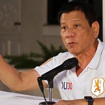 (Photo: Mr Duterte at news conference, pointing finger. Credit: EPA)