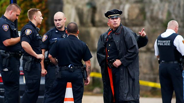 (Photo: US police stand near the station in New Jersey where an explosive device was left;