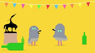 The pigeons meet Desperate Dan in Dundee