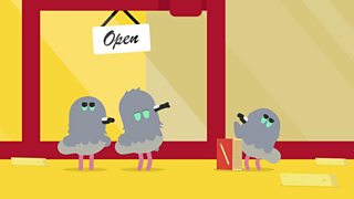 Chewing gum on the ground provides musical inspiration for the pigeons...