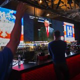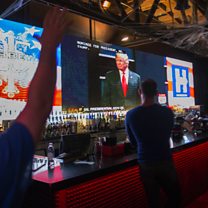 (Photo: People watch the third and final presidential debate between Donald Trump and Hillary Clinton at a bar in