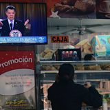 (Colombians watch President Juan Manuel Santos delivering a speech after winning the Nobel Peace Prize 2016. Credit: Raul Arboleda/AFP/Getty Images)