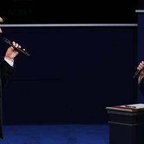 (Picture: Donald Trump and Hillary Clinton at the second presidential debate. Picture credit: Getty Images.)