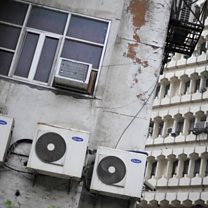 (Photo: Air conditioning units in downtown New Delhi. Credit: Roberto Schmidt/AFP/Getty Images)