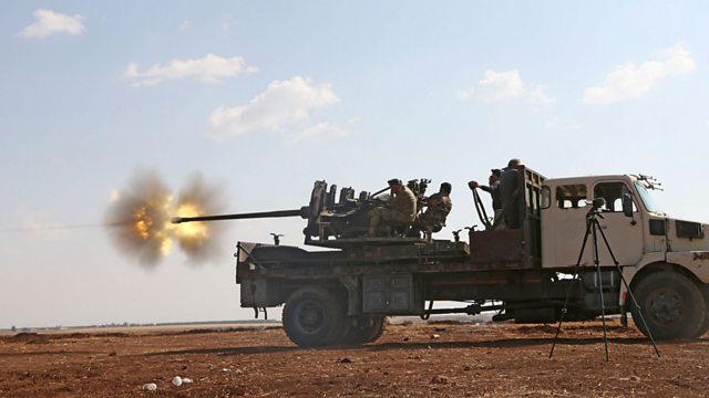 (Image: Fighters from the Free Syrian Army fire an anti-aircraft machine gun in the Marj Dabiq area of Syria on October 10, 2016. Credit: Nazeer al-Khatib/AFP/Getty Images)