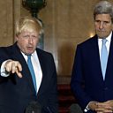 Photograph shows Britain's Foreign Secretary Boris Johnson and U.S Secretary of State John Kerry. (Credit: Associated Press)