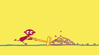Mae Dipdap yn ceisio creu cerfluniau allan o siapiau. Dipdap tries to create sculptures...