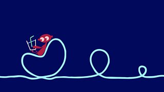Mae'r Llinell yn tynnu llun o tomato enfawr sy'n rolio ar ol Dipdap. The Line draws a g...