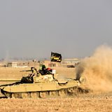 (Photo: Iraqi pro-government forces drive towards frontline near Mosul. Credit: BULENT KILIC/AFP/Getty Images)