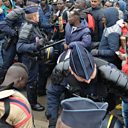 (Photo: Police clearing Calais camp. Credit: John Stillwell/PA Wire)
