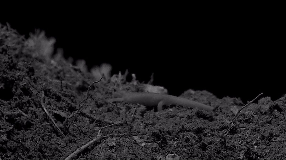 A newt makes its way across the screen