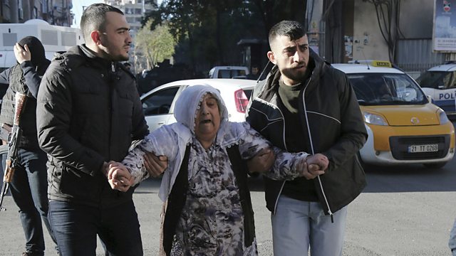 (Photo. Residents after an explosion in Turkish city of Diyarbakir. Credit: Mahmut Bozarslan/AP)