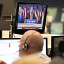 (PHOTO CREDIT: A broker at the stock exchange in Frankfurt, Germany, on November 9, 2016 as the TV screens shows Donald Trump's victory speech. DANIEL ROLAND, AFP/Getty Images)