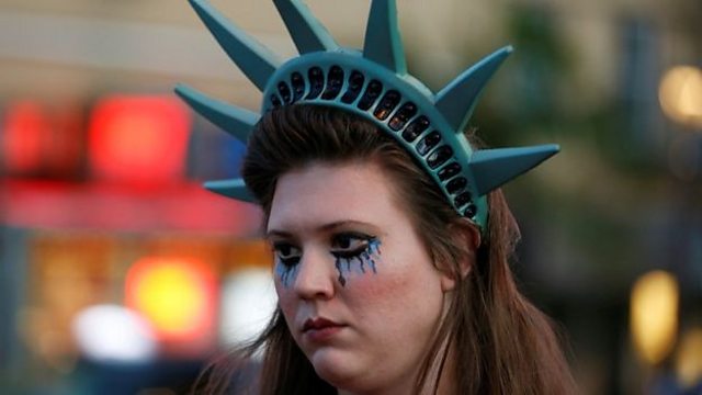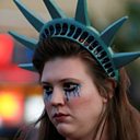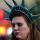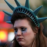 (Picture: Woman dressed as Lady Liberty, with make up showing tears Credit: Reuters)