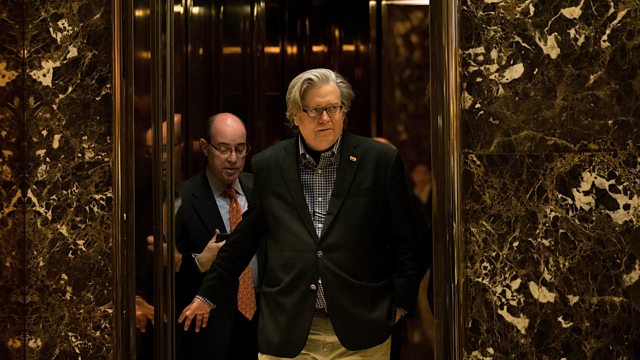 (Photo: Steve Bannon leaving lift at Trump Tower; Credit: Getty Images)