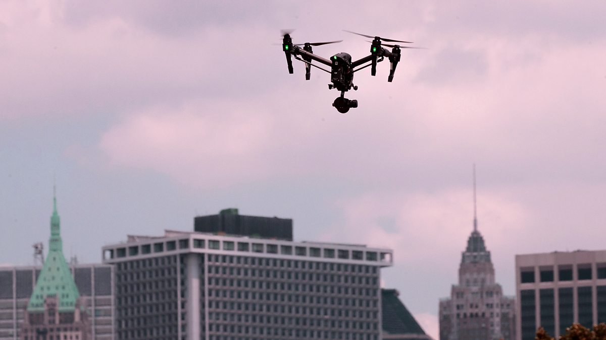 (Photo: A drone flying above the New York City skyline. Credit: Getty Images)