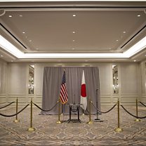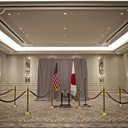 (Photo: Flags await Donald Trump and Shinzo Abe at Trump Tower in New York. Credit: Drew Angerer/Getty Images)