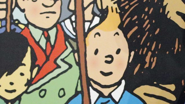 (Picture: Mural of Tintin at a Hergé exhibition. Credit: AP)