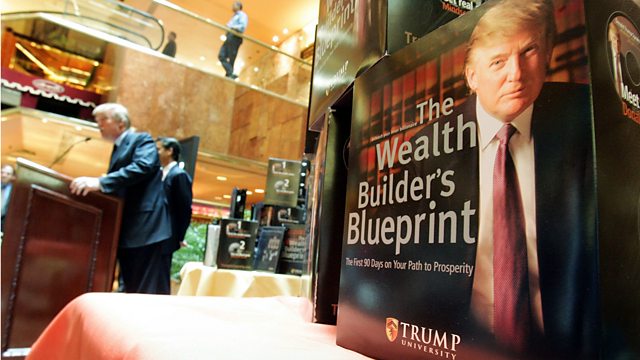 (Photo: Donald Trump speaks in front of Trump 'university' course material in New York City. Credit: Mario Tama/Getty Images)