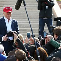 (Photo: Media surround President elect Donald Trump on the campaign trail. Credit: Jan Kruger / Getty Images)