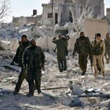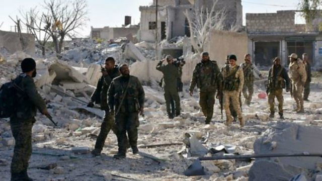 (Photo: pro-government forces walk through Hanano district of Eastern Aleppo. Credit: AFP)