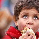 (Picture: Syrian boy evacuated from eastern Aleppo, eats bread in government controlled Jibreen area in Aleppo. Credit: Reuters 30.11.16)